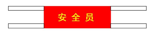 安全員的袖標尺寸標準:紅色底布,黃色字樣,寬度:10cm。如圖: